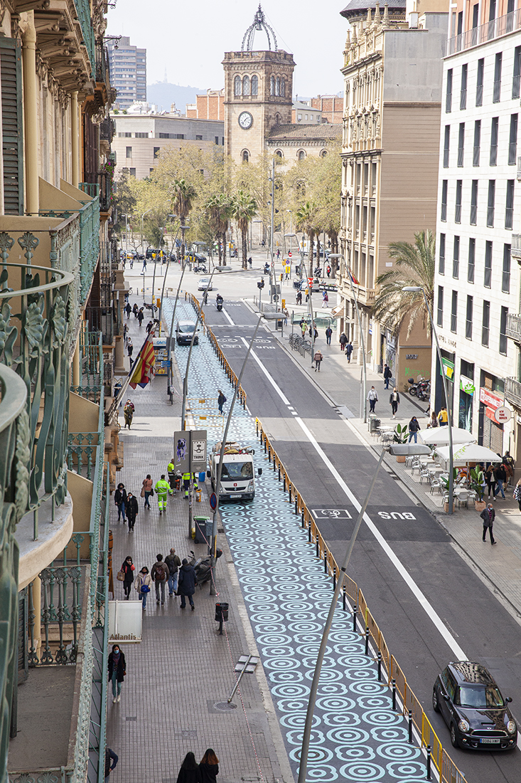 En total la vorera ha passat de 5.50 metres a 9.35 metres d’amplada, guanyant un total de 1500 m2 d’espai per als vianants.