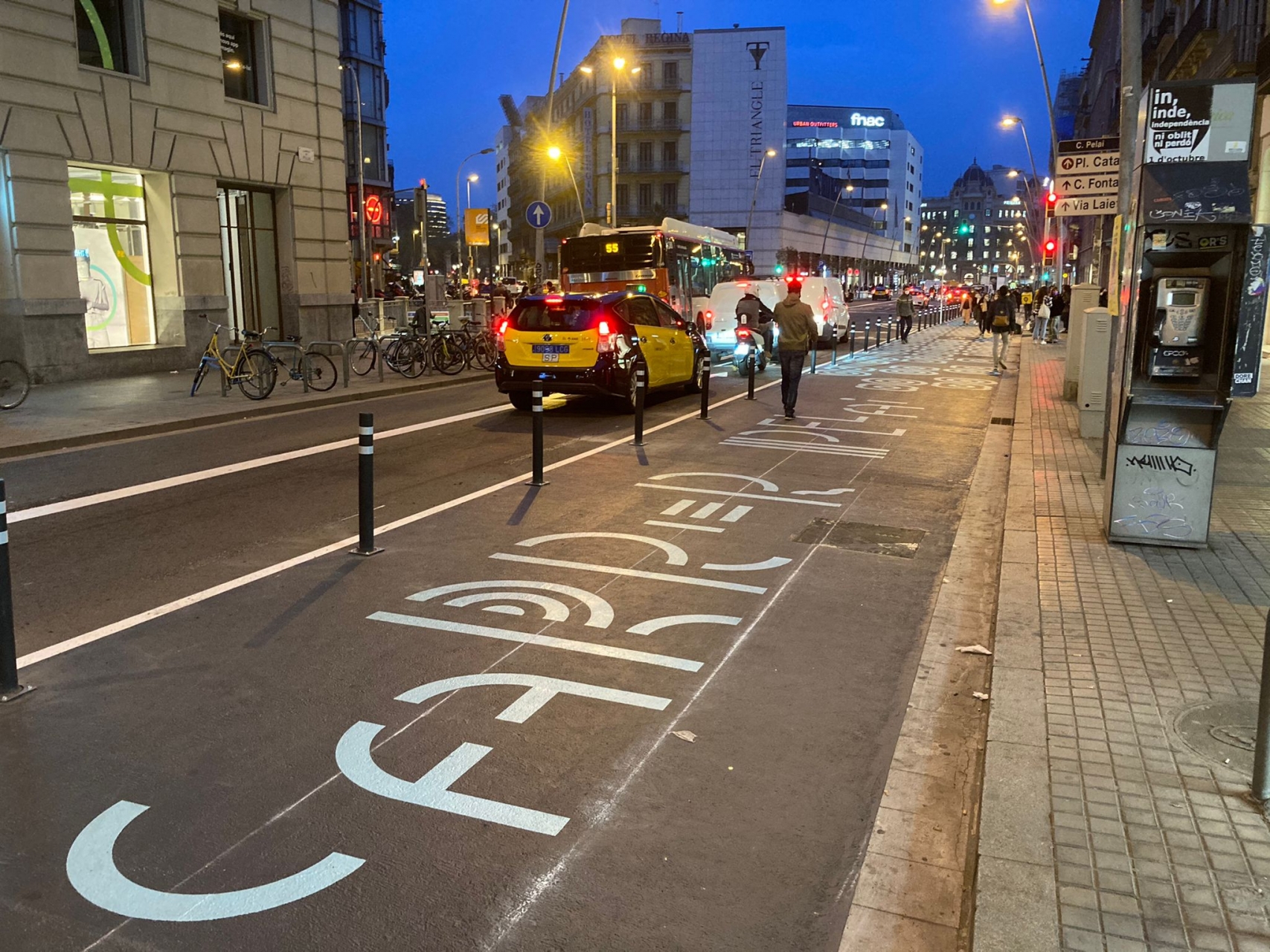 L’actuació ha implicat la reducció d’un carril per a vehicles privats, però es mantenen dos: un per al transport públic i un altre per la resta de vehicles.