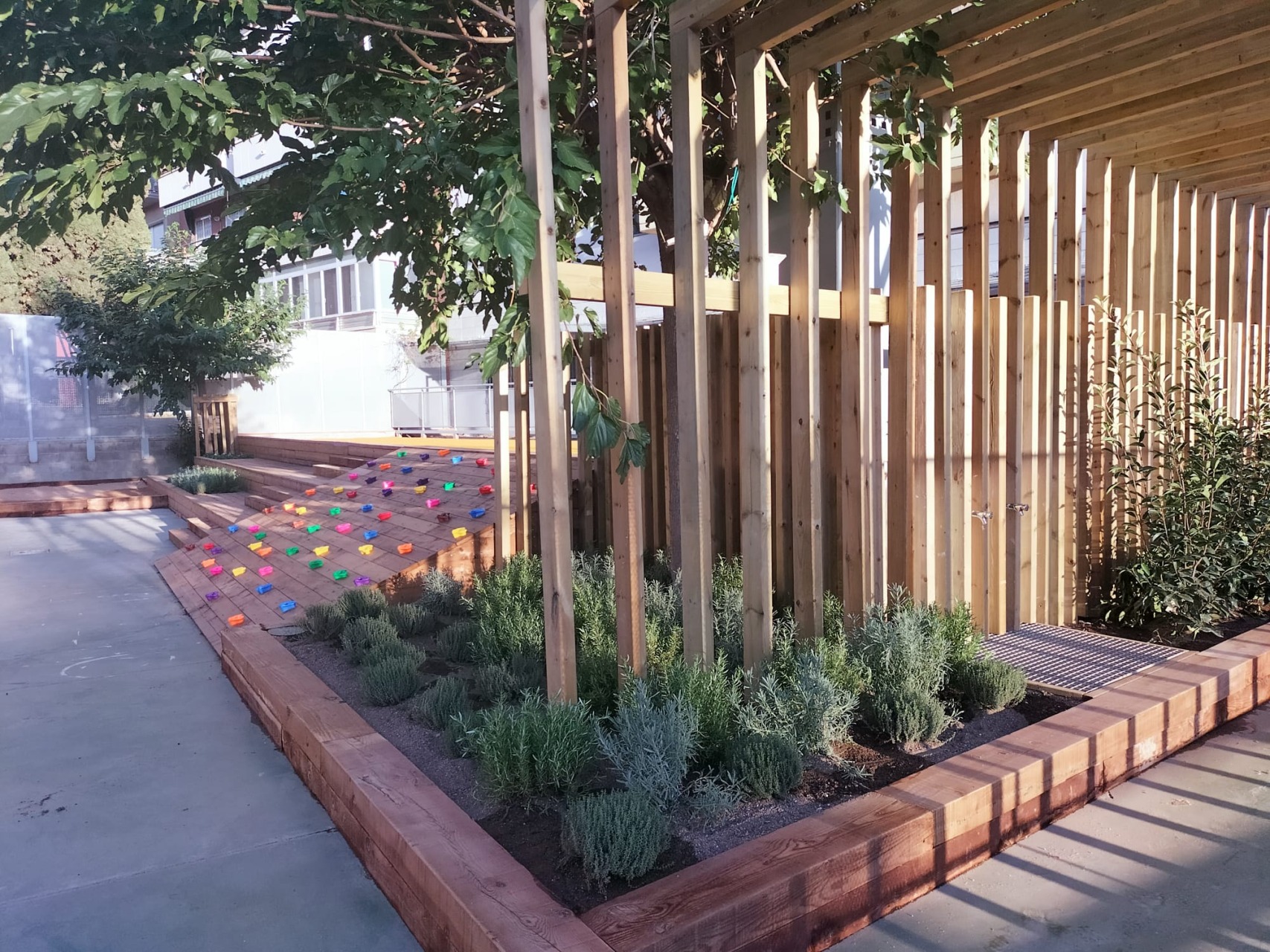 • Instalación de nuevas estructuras con elementos naturales y sostenibles: juegos dinámicos y psicomotricidad.