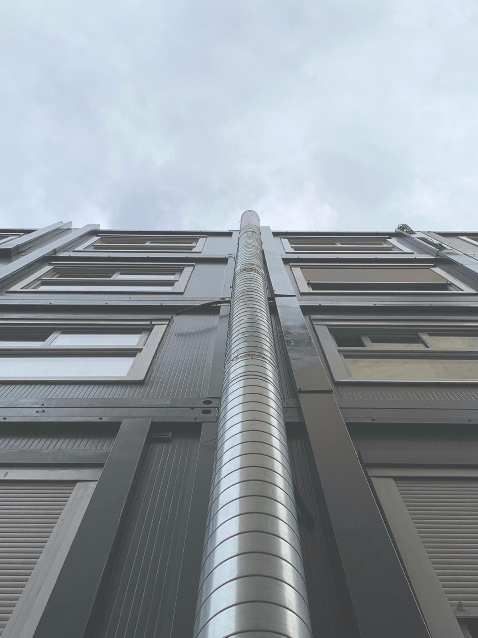 • Desmuntatge parcial de la xemeneia de la cuina per tal de perllongar-la fins a la nova coberta