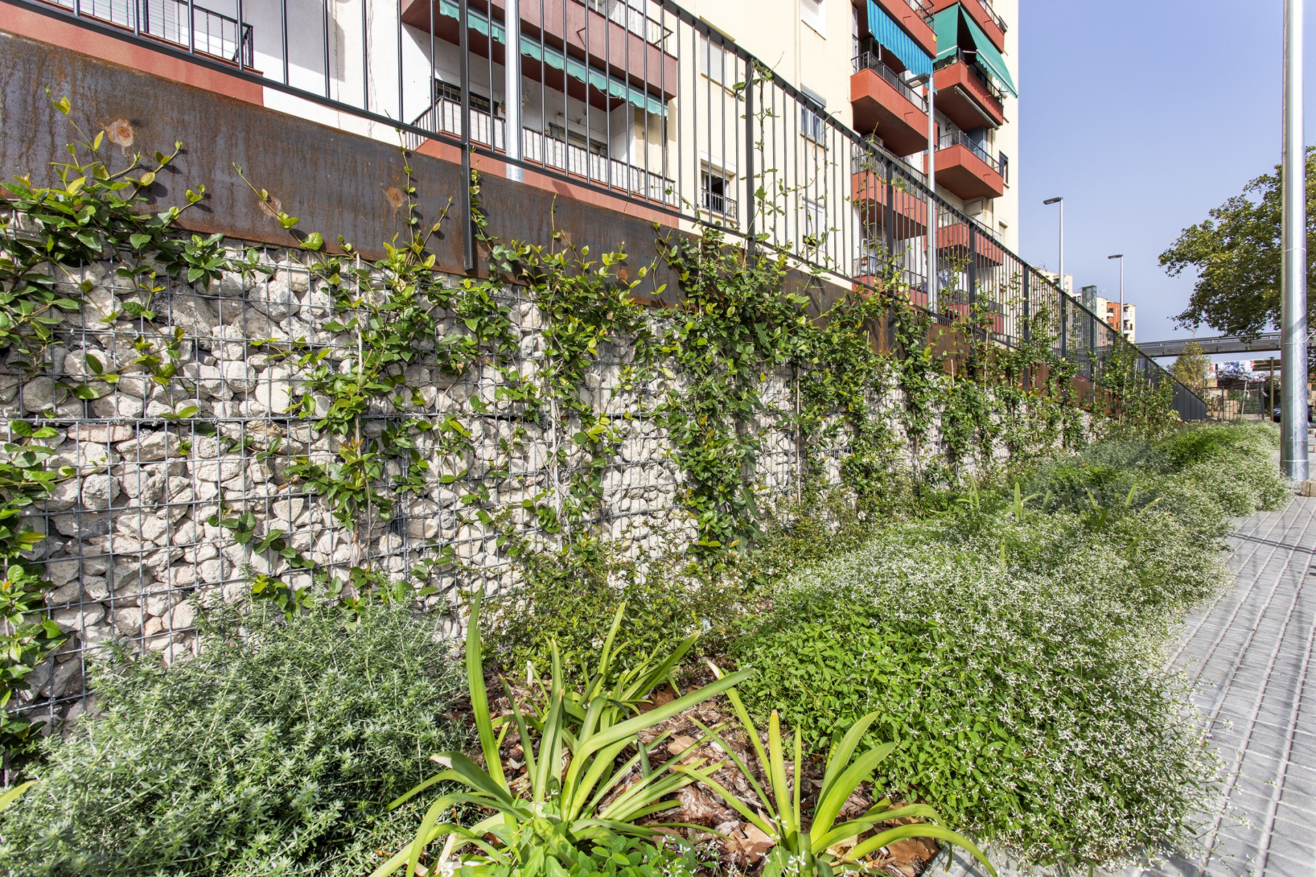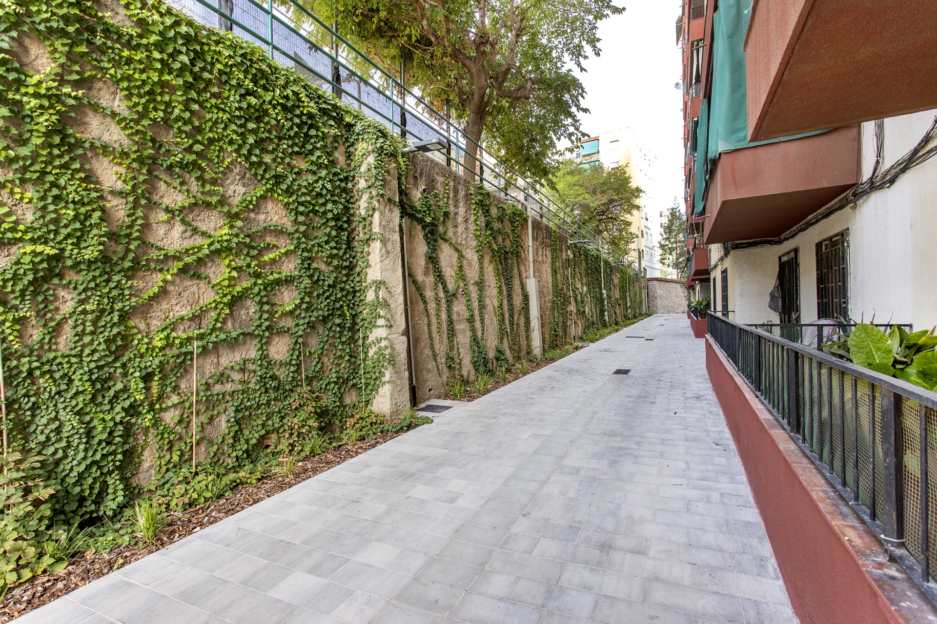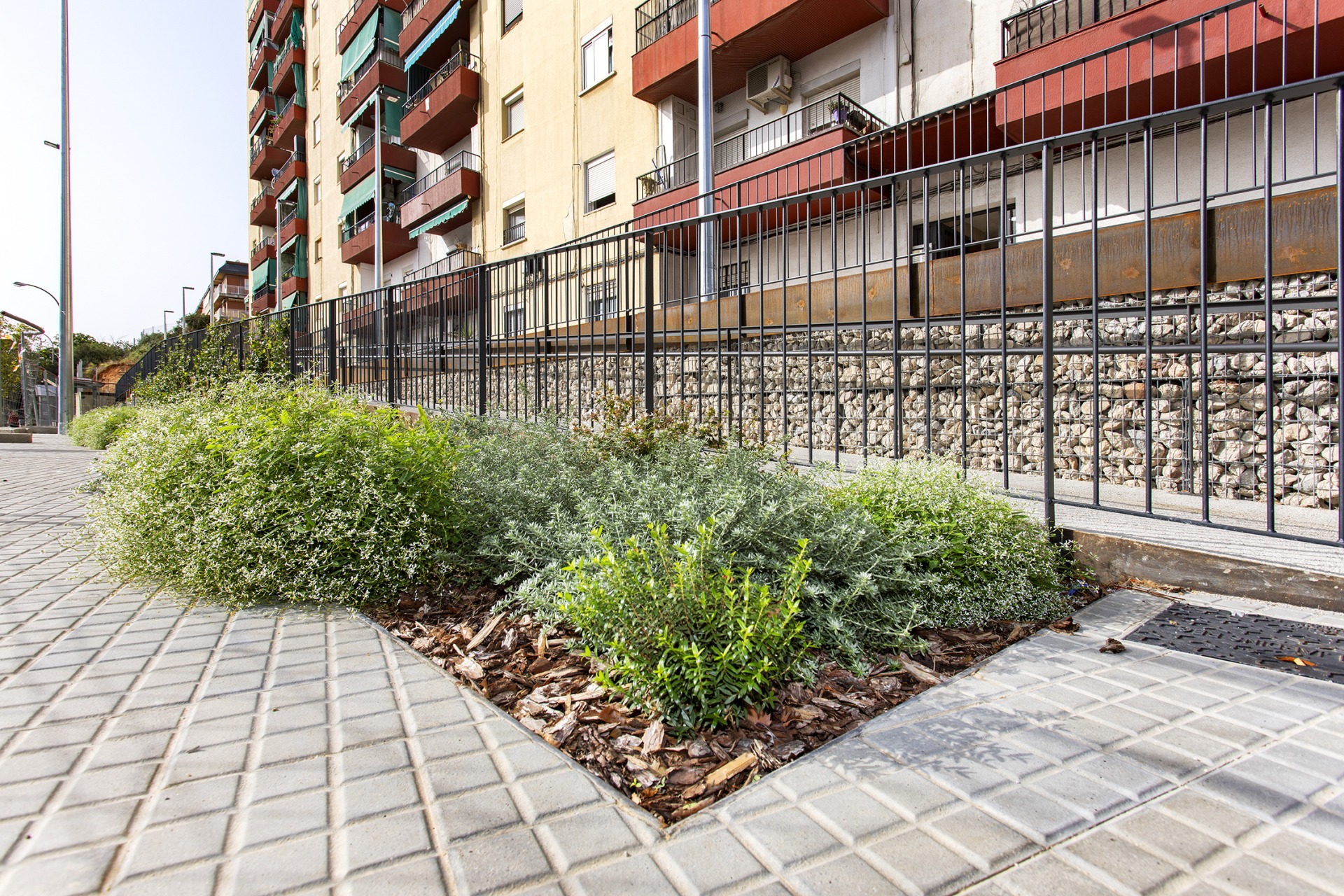 Aquesta connectivitat es complementa amb una nova vegetació de plantes arbustives i un nou arbrat que milloren la qualitat ambiental i guarneixin l’entorn del bloc residencial.